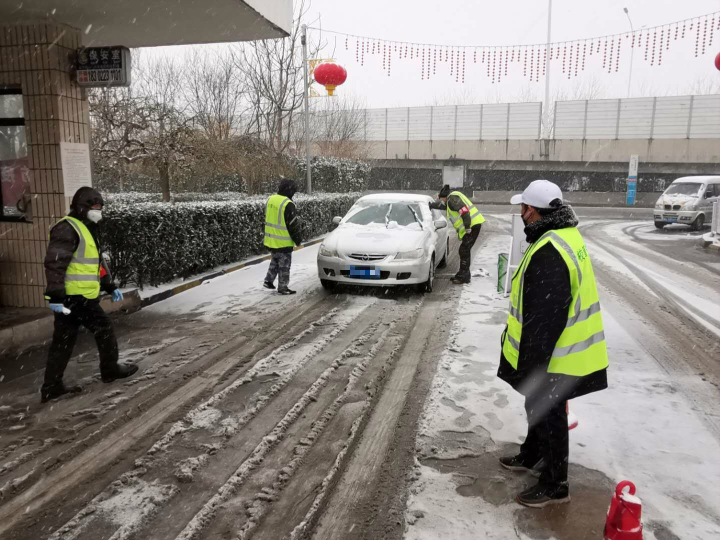 2月14日,津城迎来抗疫以来的第二场大雪,中国民航大学保卫人员和后勤公司校园管理服务中心职工冒雪坚守岗位,守护师生生命健康安全。