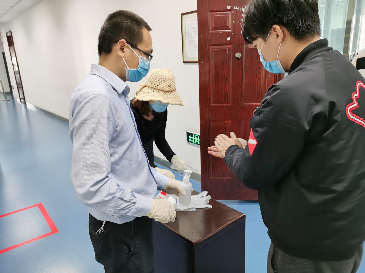 考点教师为学生测量体温、消毒