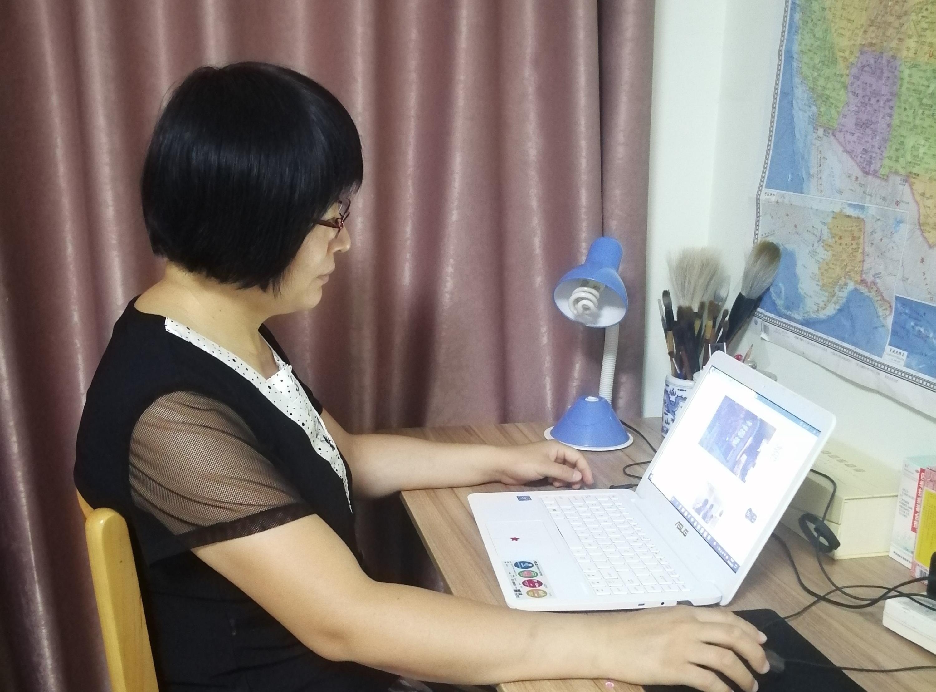 姜丽丽在家中办公