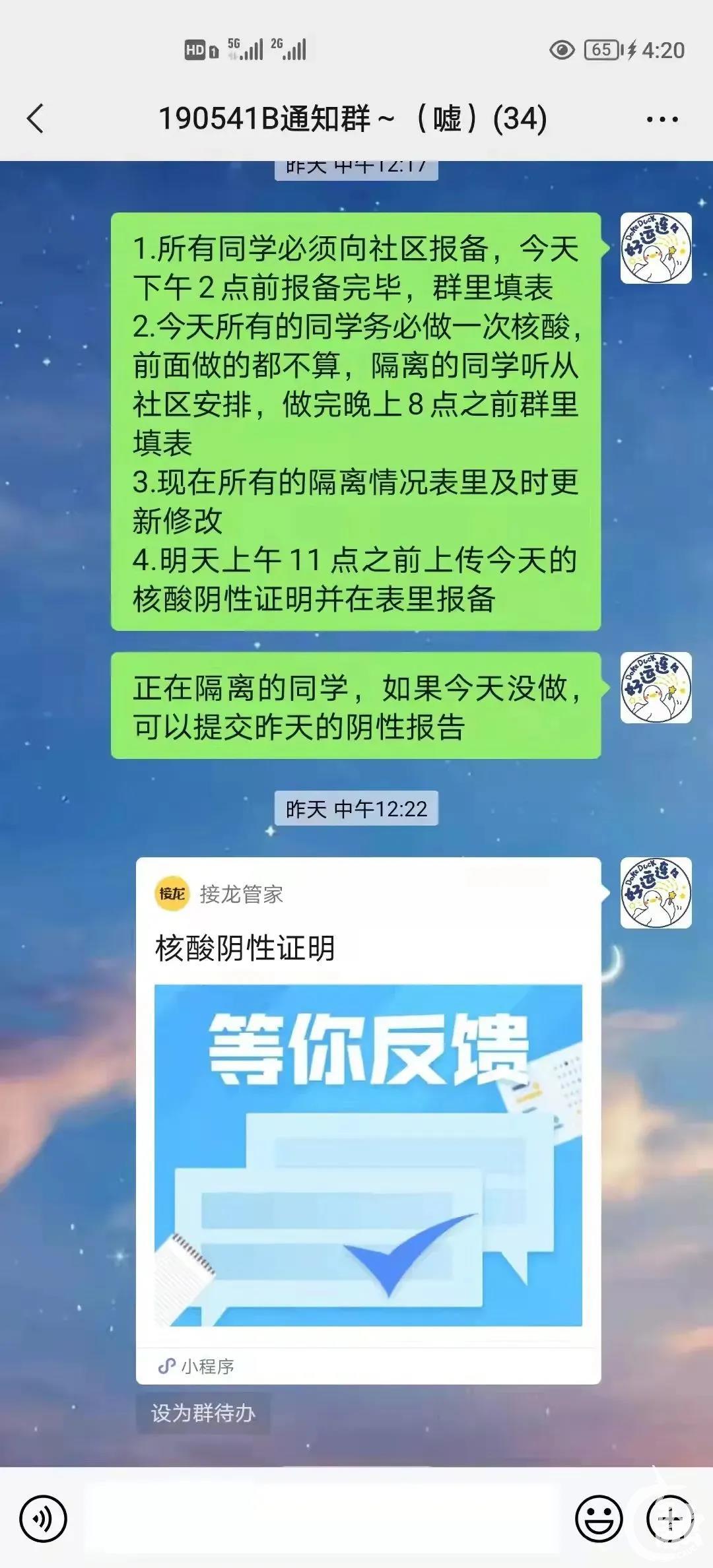 2020级班长群布置疫情防控工作