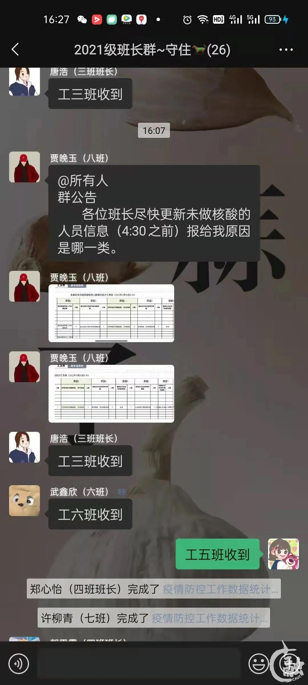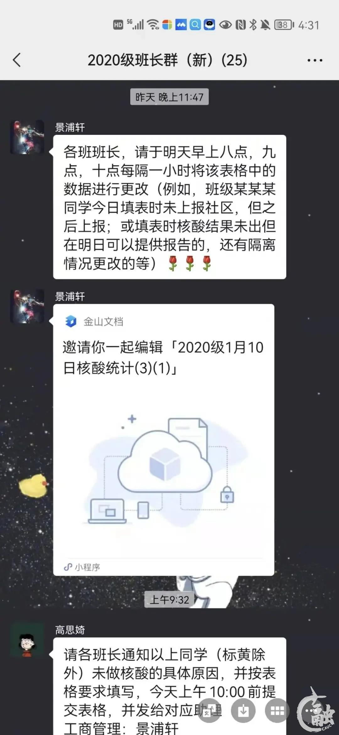 2021级班长群布置疫情防控工作