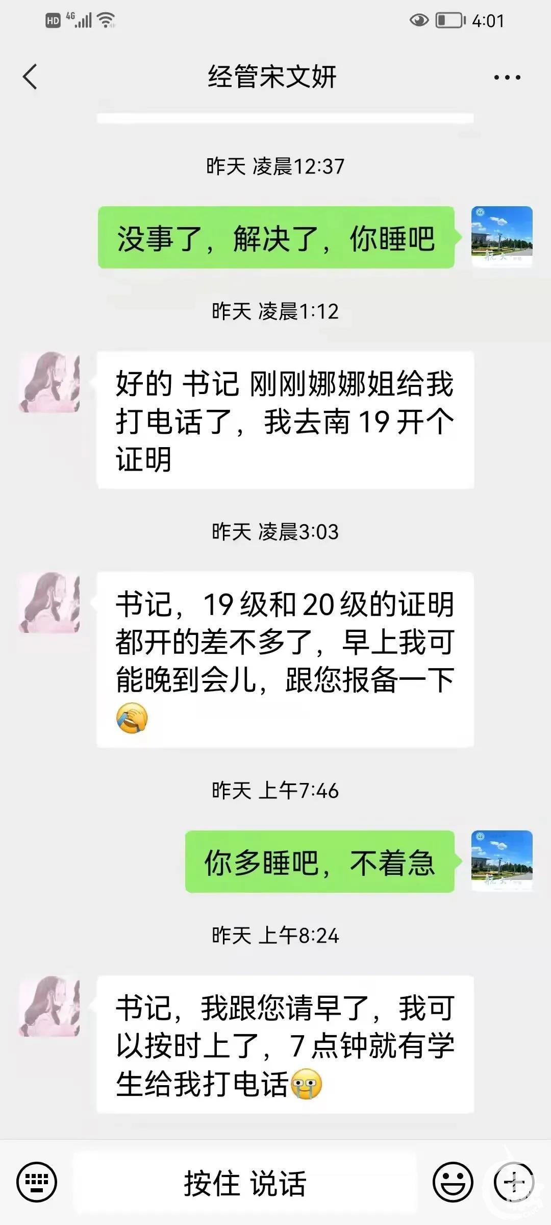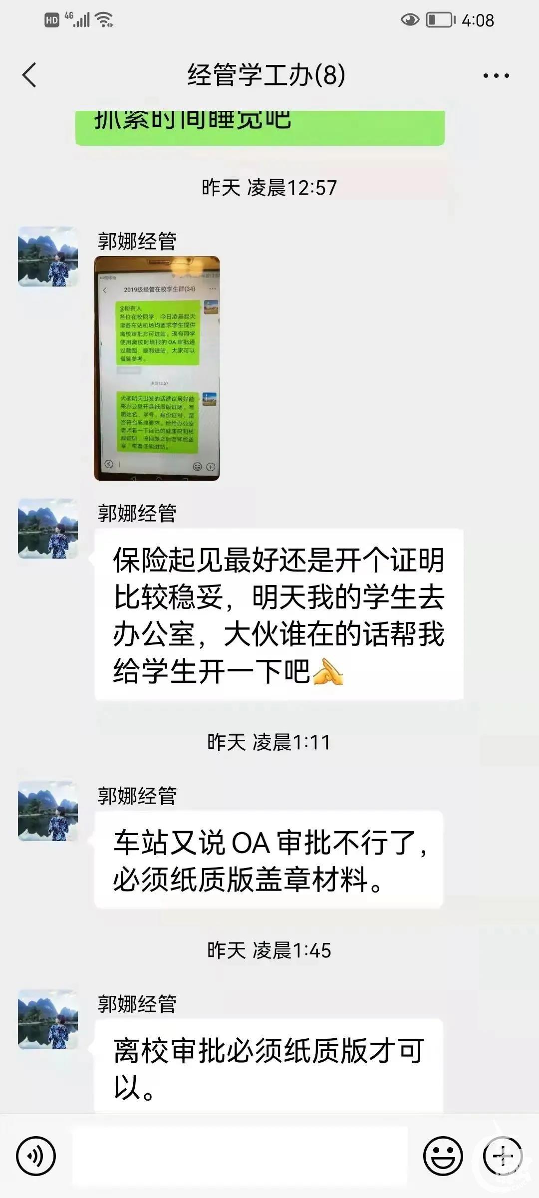 在疫情爆发的当天晚上,学工办的老师们工作到很晚,一起商讨事宜,及时处理各种问题,总是怕错过同学们的一条信息,耽误同学们的返家行程,为同学们提供了坚实的后备力量。