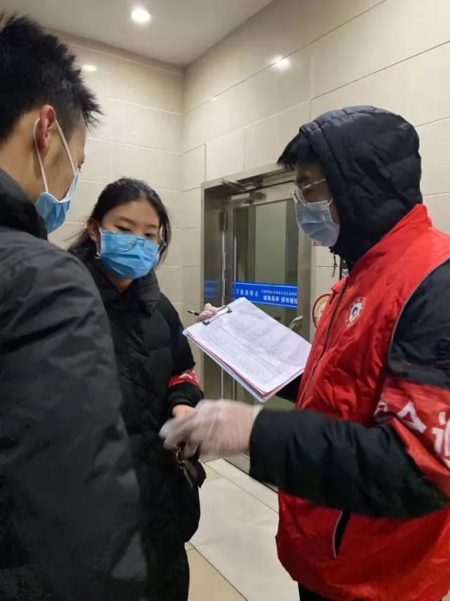 安全科学与工程学院2020级惠琳斐,与社区志愿者一起到小区里挨家挨户地询问是否有从外地进津的人员,并逐一进行严格登记排查。在调查的过程中,他们逐一敲门询问,在确认无外地进津的人员之后才会前往下一家进行询问,当发现有这类情况的人员时,他们会仔细询问其来源及48小时核酸检测报告并测量体温,再如实填写流调表或做进一步的排查工作。