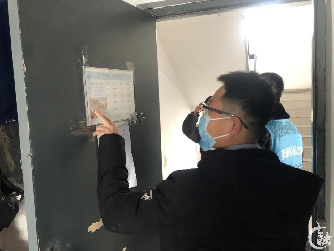 魏伟老师和志愿者们一起检查宿舍
