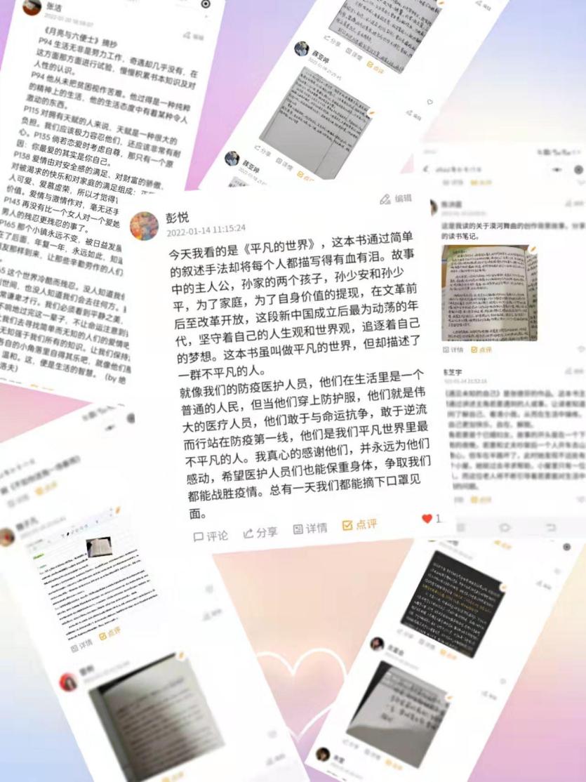 经济与管理学院团委策划疫情防控线上云打卡活动,鼓励学生积极报名参加活动。“书香传问候,共暖抗疫情”线上阅读云打卡活动分为三个主题进行,分成三组分别创建群聊,由负责人设置每日最低阅读目标,确定打卡时间,每日打卡最认真的学生进行评比,选出抗疫读书优秀学员。参与活动的学生坚持每日打卡,分享自己的读书感悟。活动缓解了学生们因疫情隔离而产生的紧张焦虑情绪,并用读书丰富生活,使枯燥无味的隔离生活变得更有色彩、有价值,拓展知识,丰富自身。在打卡的同时,学生还通过音频,文字等形式向防疫人员献上祝福、表达感谢,为这紧张的冬日战疫增添了点点温馨。