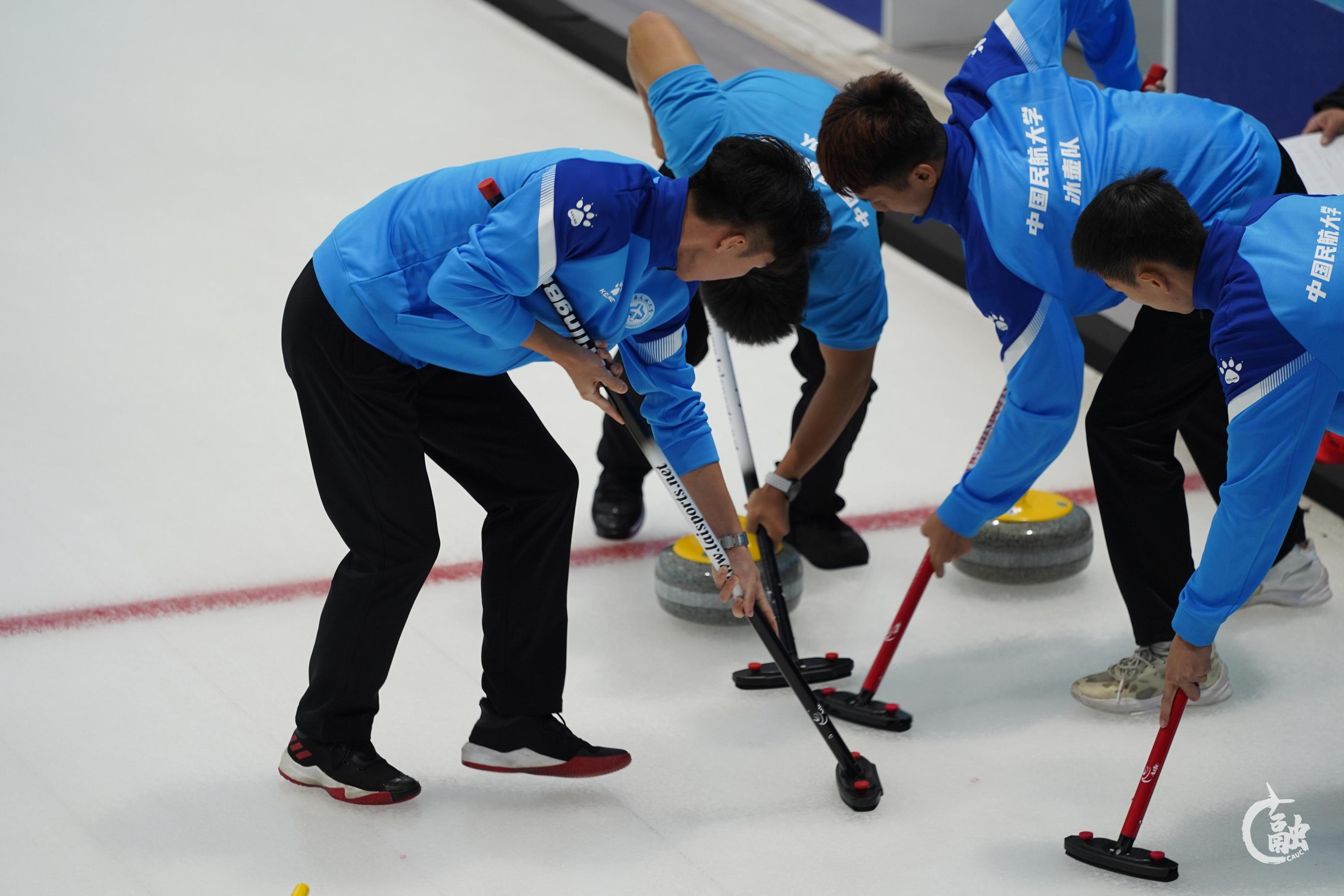 2021年12月,由国家体育总局冬季运动管理中心、中国冰壶协会、天津市体育局联合主办的首届全国高校冰壶联赛在天津蓟州国家冰上项目训练基地举办,来自全国16所高校的近200名在校生参与比赛。面对高手云集的赛场,中航大冰壶队无畏挑战,直面困难。虽然临近期末,队员们仍对参加比赛充满热情,在密集的复习和考试安排中抽出时间训练,白天在冰场挥洒热血,夜晚在宿舍挑灯夜战成为了队员们生活的常态。