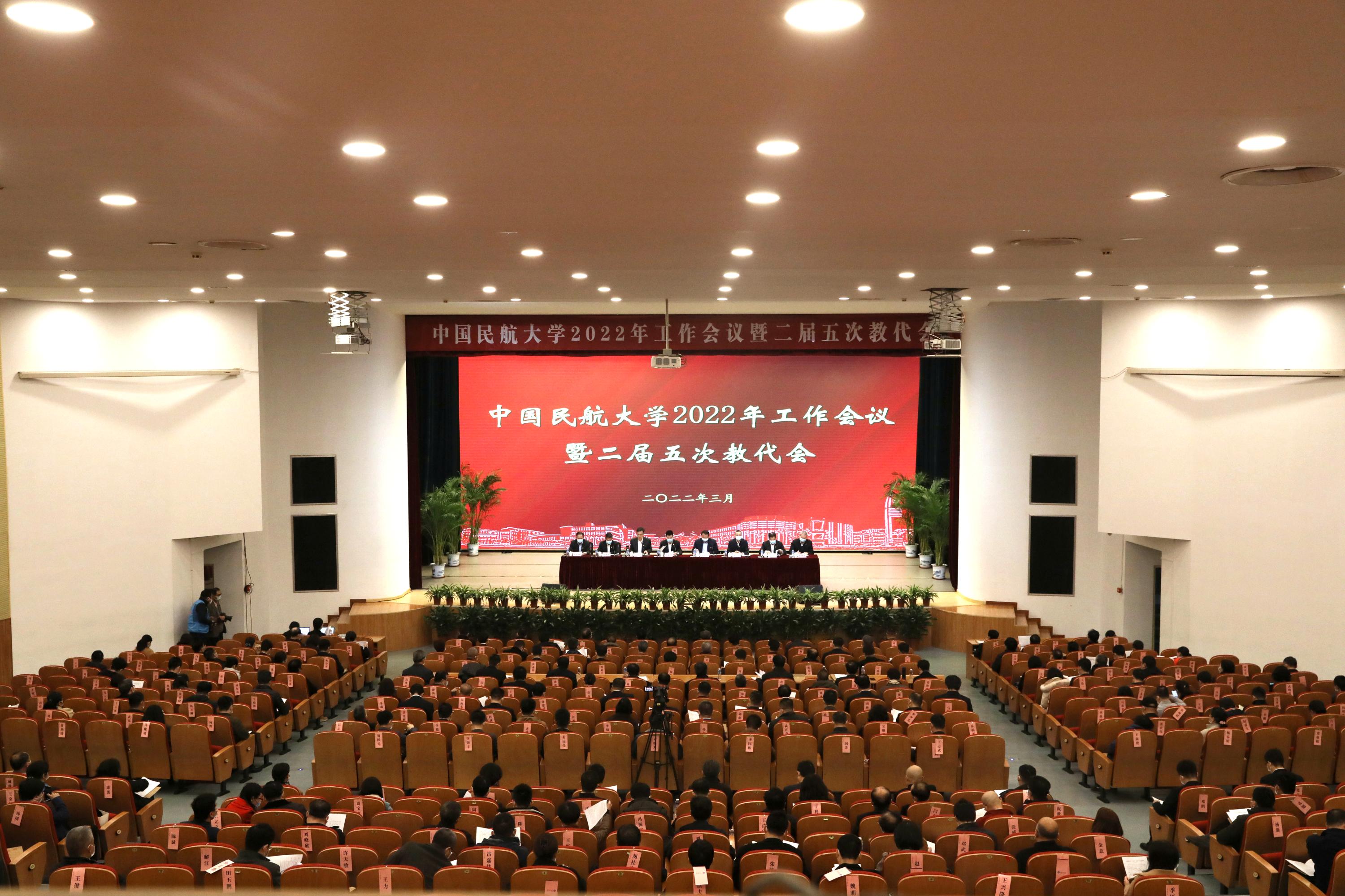 本网讯 3月11日,中国民航大学2022年工作会议暨二届五次教代会在北区礼堂召开。会议传达了2022年全国民航工作会议、全国民航安全工作会议、全国教育工作会议、天津市教育工作会议精神,校党委书记曹胜利讲话,校长丁水汀总结2021年主要工作,并对2022年重点工作进行部署,副校长白杰主持会议,副校长杨虎,校党委副书记赵洪海、徐政华,校党委常委王志强、葛维建出席。全体处级以上干部、二三级岗教师及省部级以上人才、民主党派主委,第二届教代会代表参加会议。