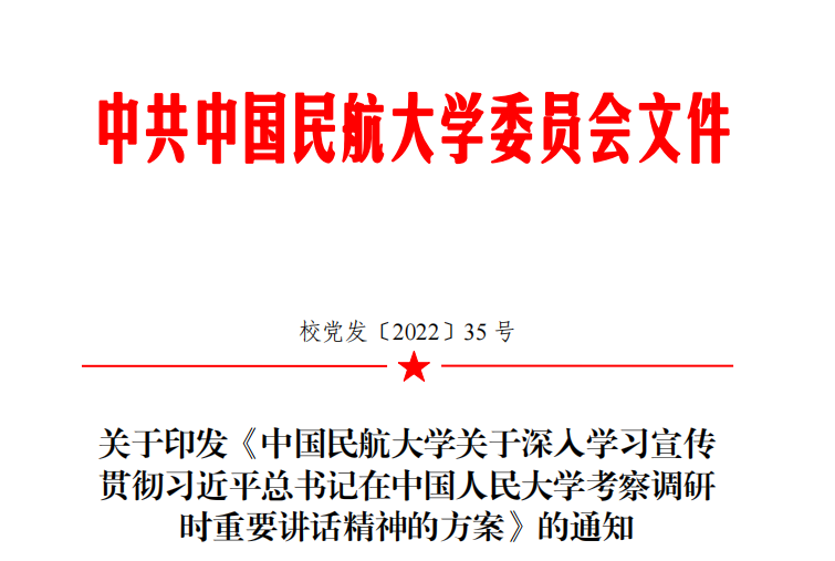 5月4日,中国民航大学党委印发《中国民航大学关于深入学习宣传贯彻习近平总书记在中国人民大学考察调研时重要讲话精神的方案》,就做好学习宣传贯彻落实有关工作作出部署。