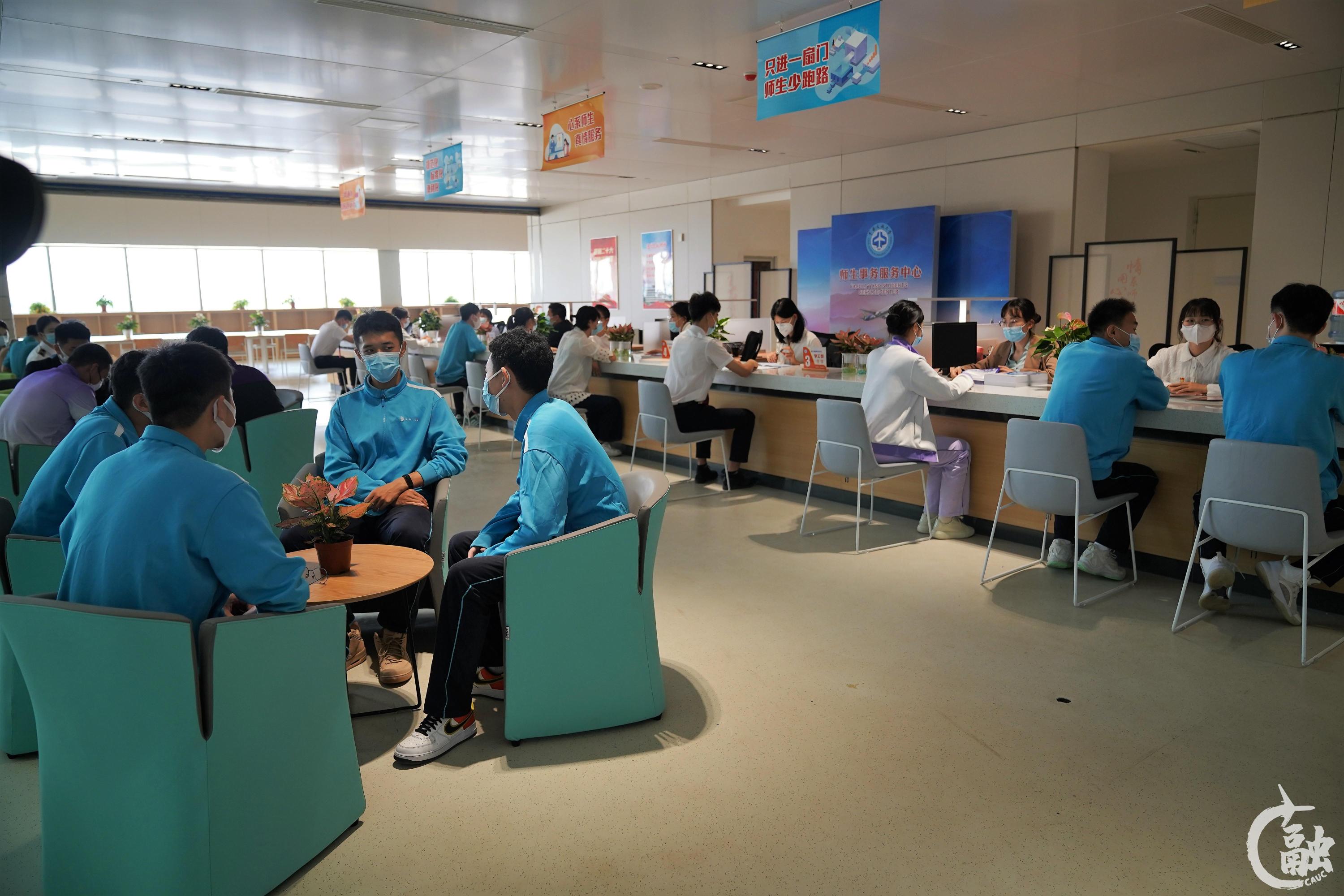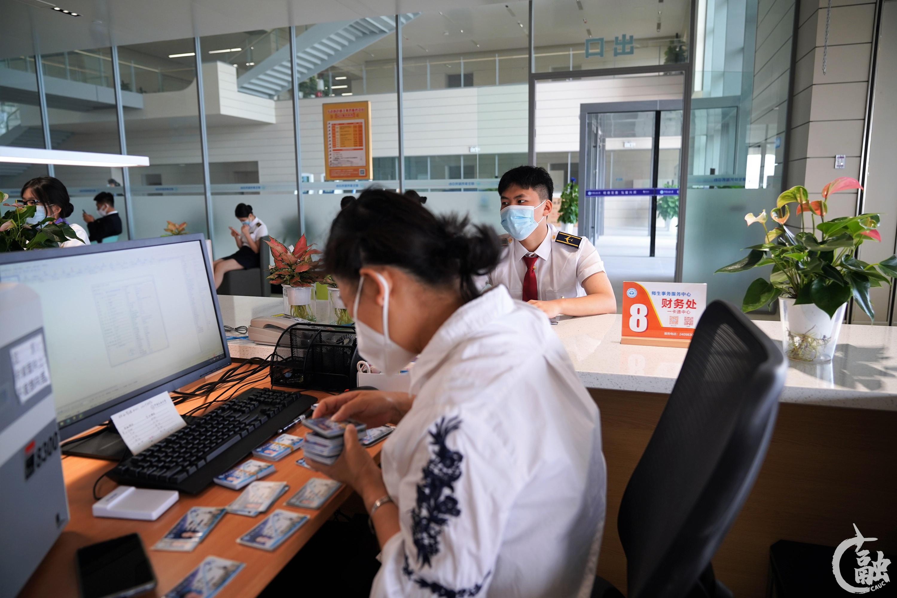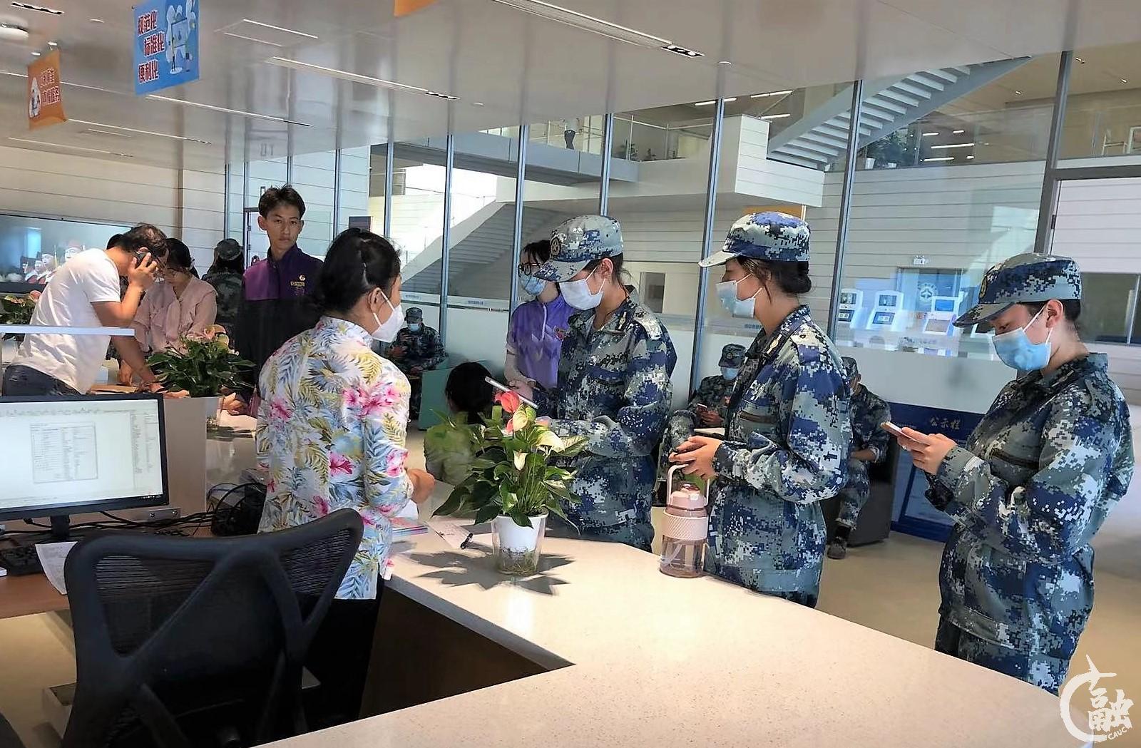 不到早晨8:00,服务大厅就迎来一群穿着迷彩服的“小萌新”,来到8号“校园一卡通服务”窗口办理业务。窗口服务的陆老师忙而不乱,微笑始终挂在脸上,温柔耐心地解答问题办理业务。6、7号窗口核算与收费中心的服务人员看到学生集中前来办理一卡通业务,也积极主动帮忙,减少学生等候时间。飞行分校2020级学生赵亮前来补办学生卡,他说:“服务大厅环境温馨漂亮,窗口的老师也非常热情、专业,在了解我的需求之后当场就帮我解决了问题。”
