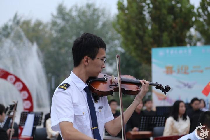 空中交通管理学院2021级学生张煜晨参演管弦乐团的两首曲目,她说:“为了在这次音乐会上更好地表演,我们在日常排练的基础上,还安排了加练,增强了配合度,也更加注重演奏的强弱和节拍的统一,使整个曲目更协调统一。能在国庆节登台展示,我感到非常荣幸,也希望祖国更加繁荣昌盛,民航事业蒸蒸日上。”
