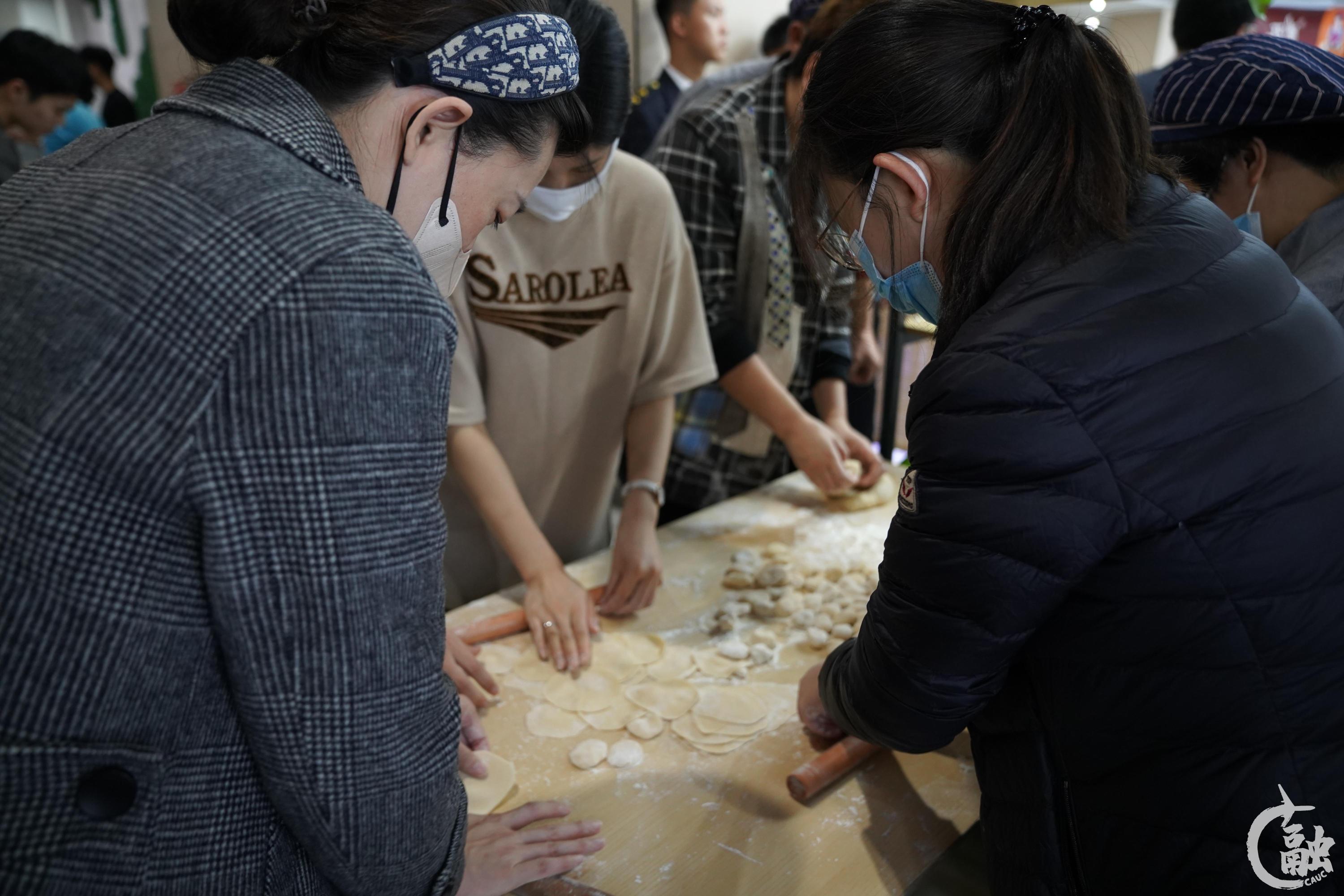 学生一起擀饺子皮