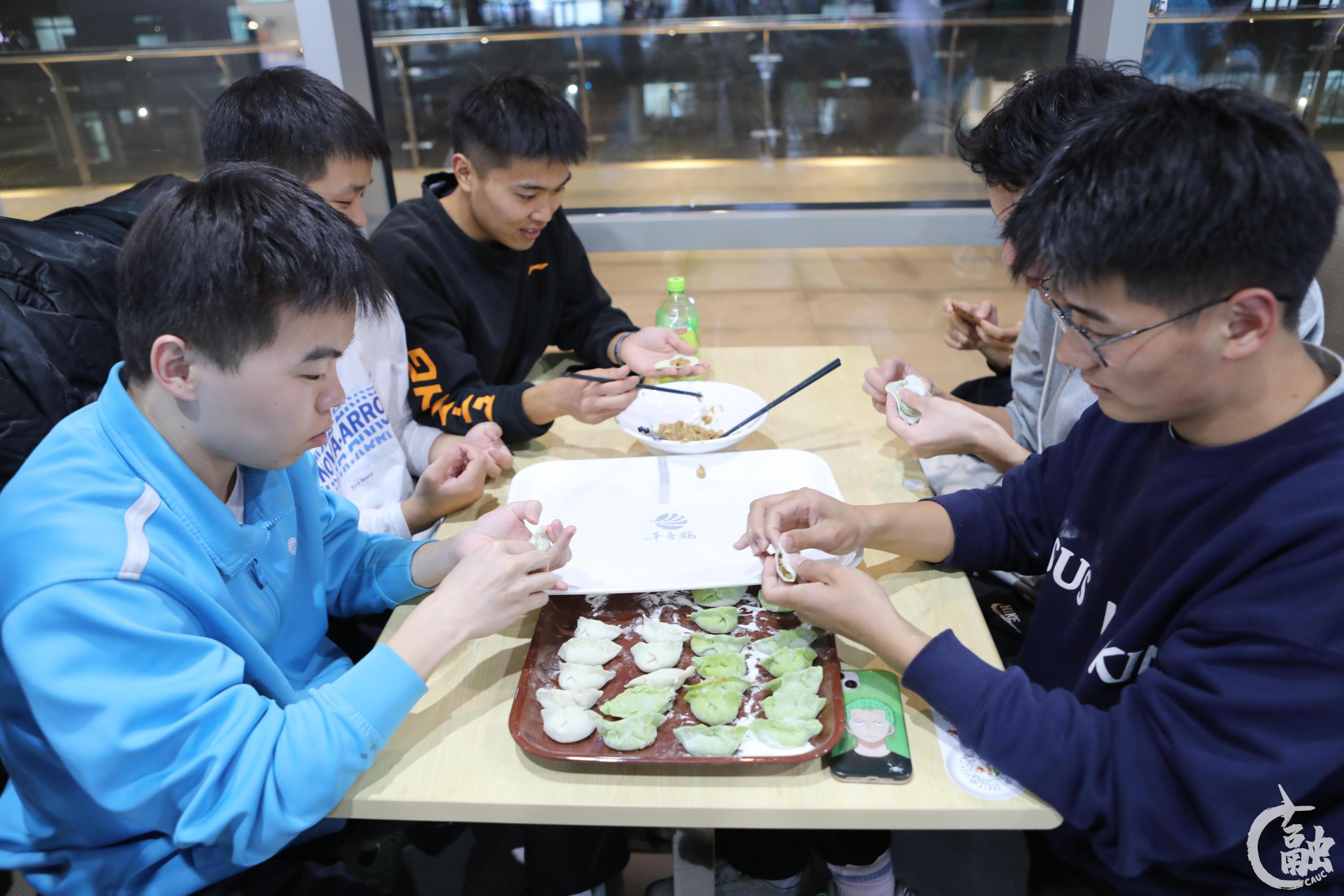 学生包饺子