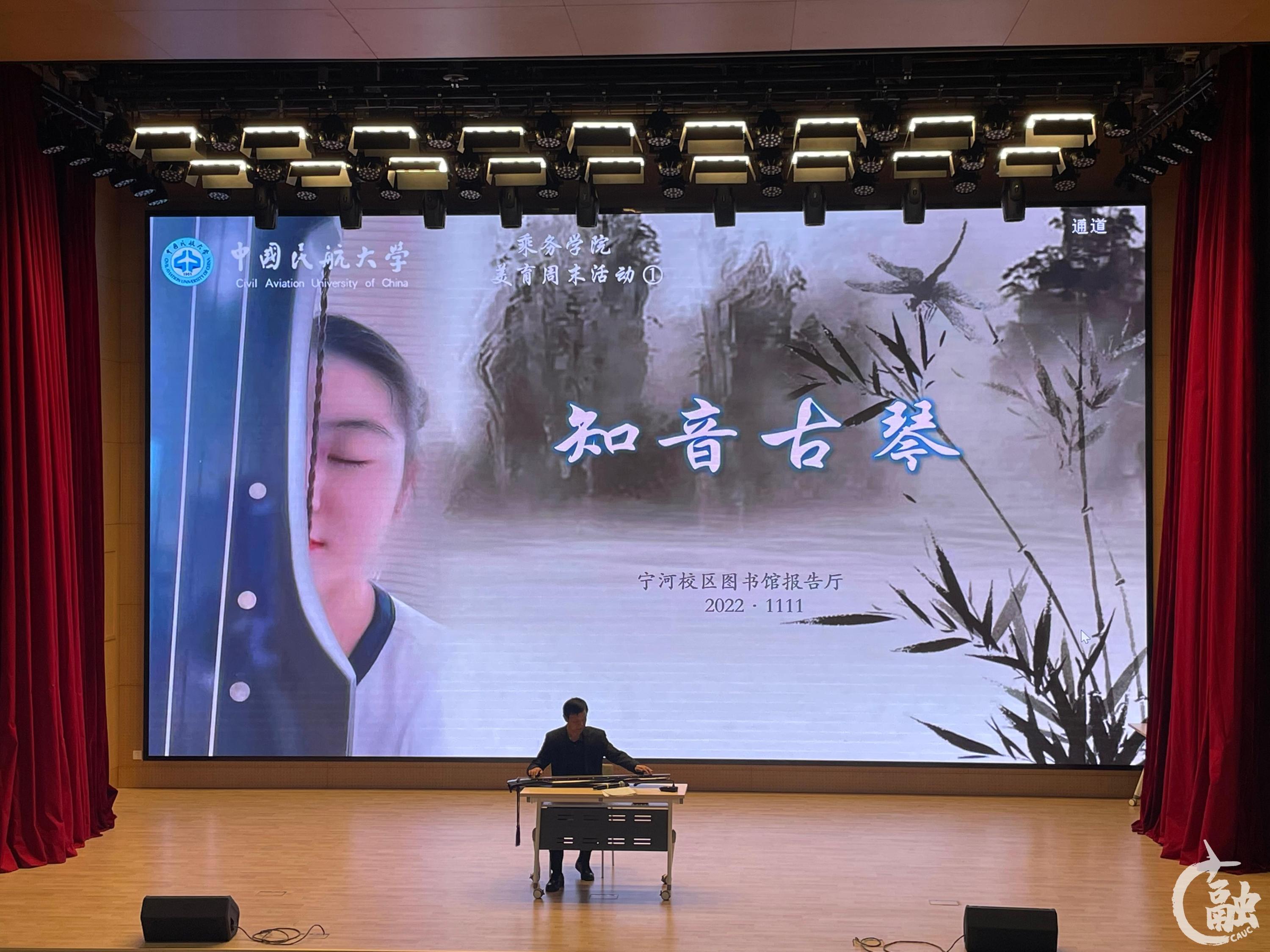 本网讯 日前,乘务学院首场“美育周末”系列活动之“知音古琴”在宁河校区图书馆报告厅举办,活动由乘务学院艺术教师张清华主讲,宁河校区部分学生参加。
