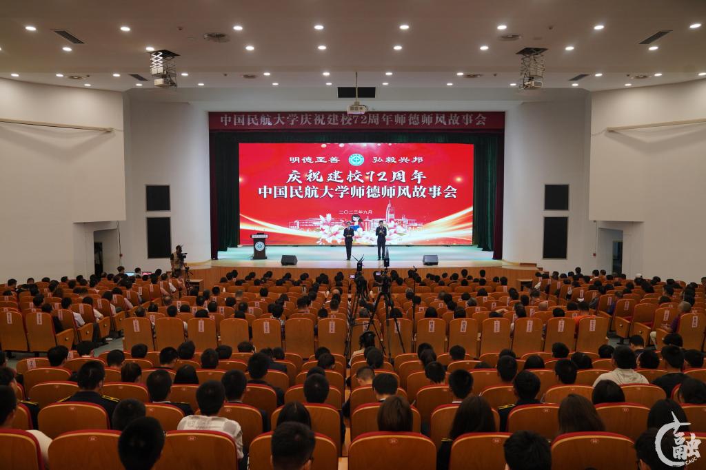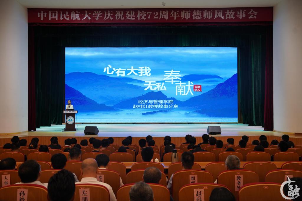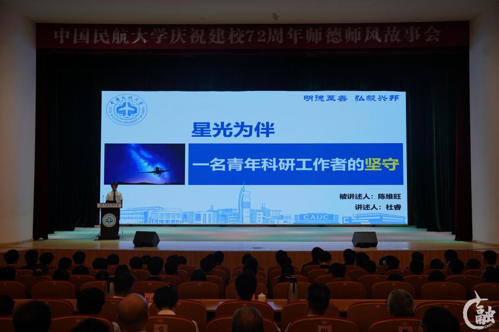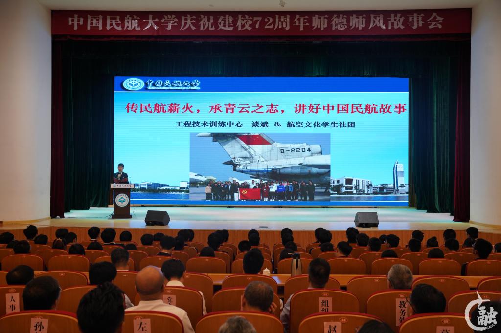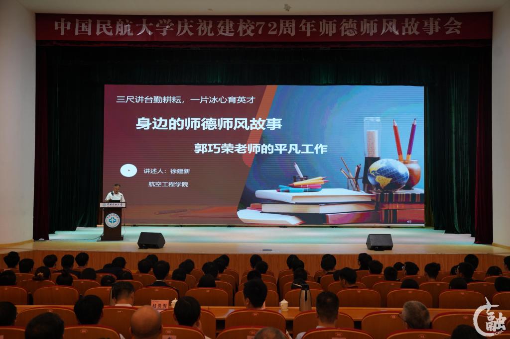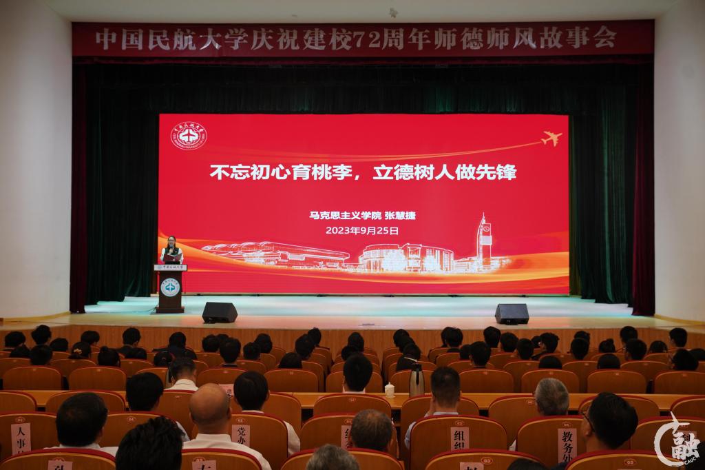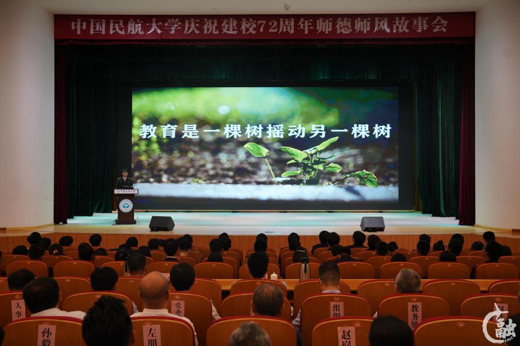 本网讯 9月25日,在中国民航大学建校72周年之际,学校师德师风故事会在东丽校区北区礼堂举行,7位讲述人从树师表、育师德、立师道、正师风、练师能五个角度讲述中航大教师们的故事。校党委书记曹胜利、校党委副书记赵洪海出席。党办校办、组织部、宣传部(教师工作部)、统战部、纪委办(监察处)、保卫部、教务处、研究生院、科技处、人事处、工会办等党委教师工作委员会成员单位负责人,各党委(总支)党政相关负责人,师生代表到场聆听。