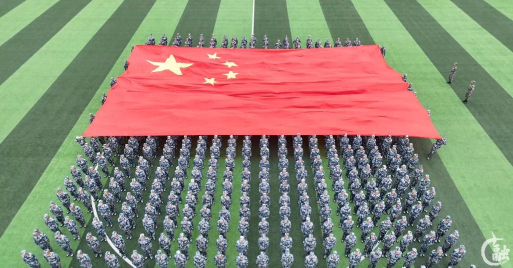 “我和我的祖国,一刻也不能分割......”伴随着《我和我的祖国》歌声响起,一面巨幅国旗由学生们手手相传,缓缓展开。拳、步、挡、削,学生们表演捕俘拳动作干净利落,刚劲有力;匕首操表演刚柔并济,学生们眼神坚毅,声音响亮,一招一式尽显英姿飒爽,展现青春的热血。