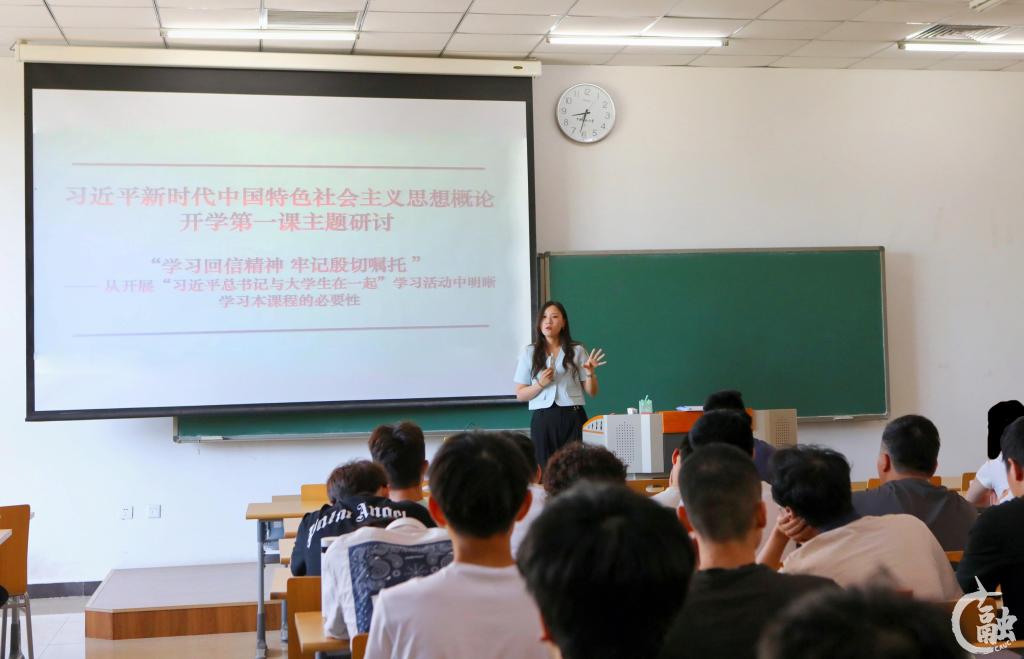 迎来新学期,开启新征程,学生认真聆听新学期第一堂思政课。思政课教师郭英楠以“学习回信精神·牢记殷切嘱托”为主题,引导学生传承和弘扬中华优秀传统文化,坚定文化自信、讲好中国故事、传播中国思想,寄语中航大学子“以更加强大的文化自觉和文化自信,传承好中国‘文化DNA’,将中华优秀传统文化发扬光大。”“我们的教育决不能培养社会主义的破坏者和掘墓人。”思政课教师王冬雪通过对西方思想政治教育模式和中国思想政治教育模式比较教学,向学生阐释高校思政课主干课开设的必要性和合理性,她勉励学生要在各种重大斗争考验面前“乱云飞渡仍从容”,争做马克思主义和中国特色社会主义的践行者和捍卫者。