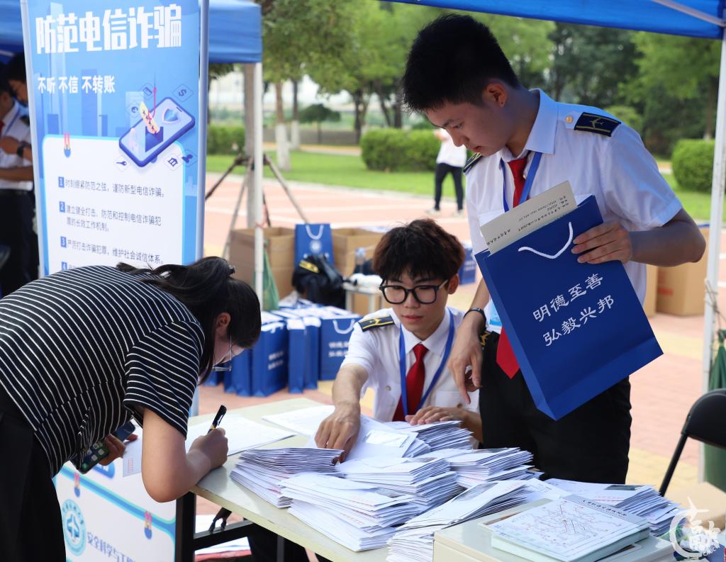 学校开展新生前置安全教育,涵盖国家安全、防范电信网络诈骗、交通安全、消防安全、人身安全、财产安全、网络安全、实验室安全、净空安全、求职安全、心理安全、禁毒教育、诚信与法律等13个方面内容。同时,在新生报到、军训的必经之路上悬挂反诈宣传横幅、在校内LED电子宣传栏更新反诈内容、新闻视窗播放反诈视频,在新生心中种下一颗“安全”的种子。