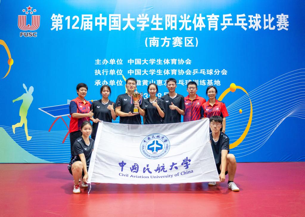 本网讯8月24日至25日,第12届中国大学生阳光体育乒乓球比赛(南方赛区)于安徽黄山举行,由陈倬冰、李嘉乐、李欣瞳、林川淇、李旭明、李天祥6名中航大学子组建的中国民航大学乒乓球队不畏强敌,奋勇拼搏,最终晋级八强,斩获南方赛区第五名,荣获全国一等奖,直通全国总决赛。