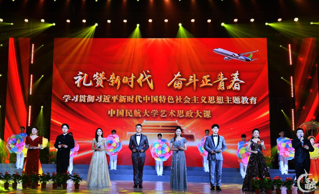 中国民航大学以诵读、合唱、舞蹈、表演联唱、器乐合奏等形式举办“礼赞新时代 奋斗正青春”学习贯彻习近平新时代中国特色社会主义思想主题教育艺术思政大课;以“春之序曲”“夏之缤纷”“秋之华章”“冬之灵韵”四个篇章开启“所以少年人·启航新征程”2023届毕业晚会。营造积极向上、清新高雅、健康文明的校园文化氛围,为毕业生上好最后一堂生动的“音乐思政大课”。