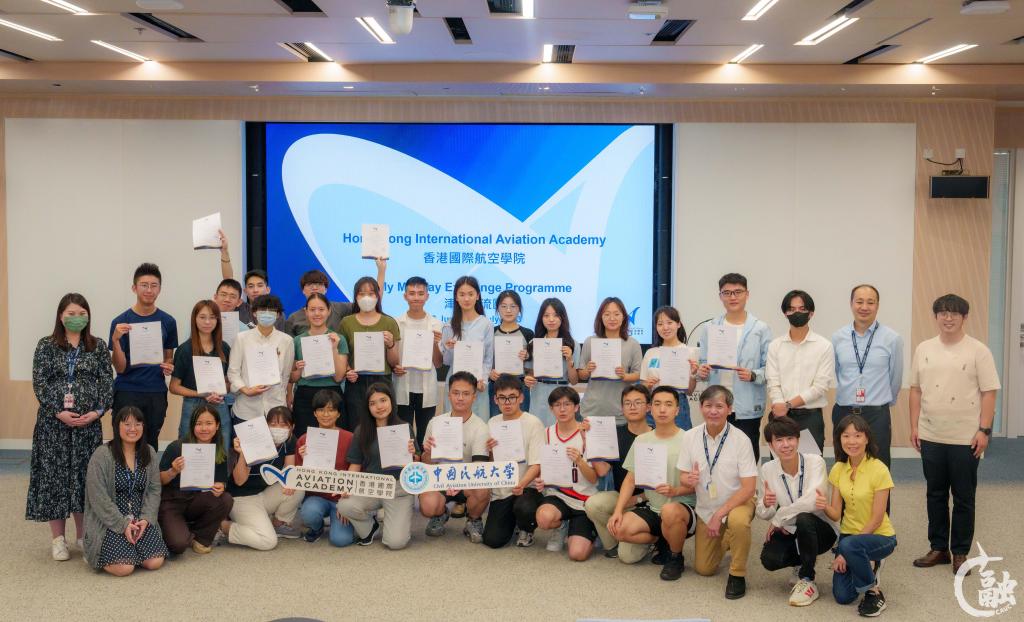 本网讯 7月5日,由中国民航大学和香港国际航空学院联合举办的首届津港学生航空夏令营活动圆满结束。此次活动自6月27日启动,为期9天,活动在香港、天津、北京等地举办。中国民航大学选拔11名优秀在校生代表、香港国际航空学院面向香港理工大学、香港培正中学等香港高校及中学招募选拔14名学员参加本次夏令营。