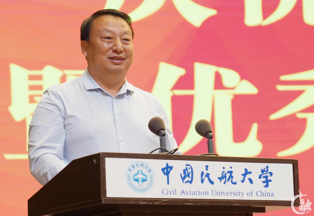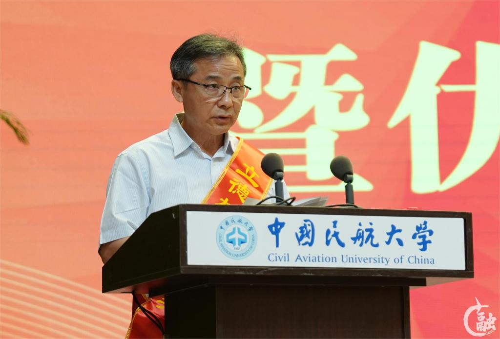 获奖教师代表、立德树人成就奖获得者张鹏教授在发言中讲述在自己的从教岁月中,经历并见证了中国民航事业的飞速发展,见证了学校取得丰硕发展成果,感恩学校的培养和关怀。他表示,教师应常怀感恩之心,落实立德树人根本任务,脚踏实地教书育人,将个人发展融入实现中华民族伟大复兴的战略全局,融入交通强国建设民航新篇章,融入建设中国特色世界一流民航大学。