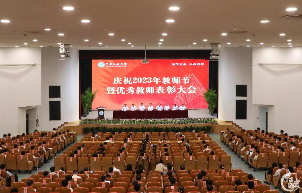 本网讯 9月8日下午,在第39个教师节来临之际,中国民航大学庆祝2023年教师节暨优秀教师表彰大会在东丽校区北区礼堂召开。校党委书记曹胜利,校长丁水汀,副校长白杰、杨虎、吴仁彪,校党委副书记赵洪海,校党委副书记、纪委书记徐政华,校工会主席王志强出席。全体处级以上领导干部、获奖教师代表参会。白杰主持会议。