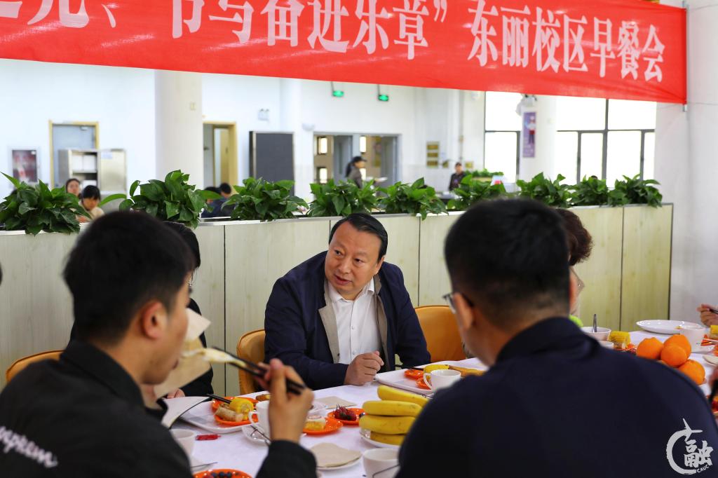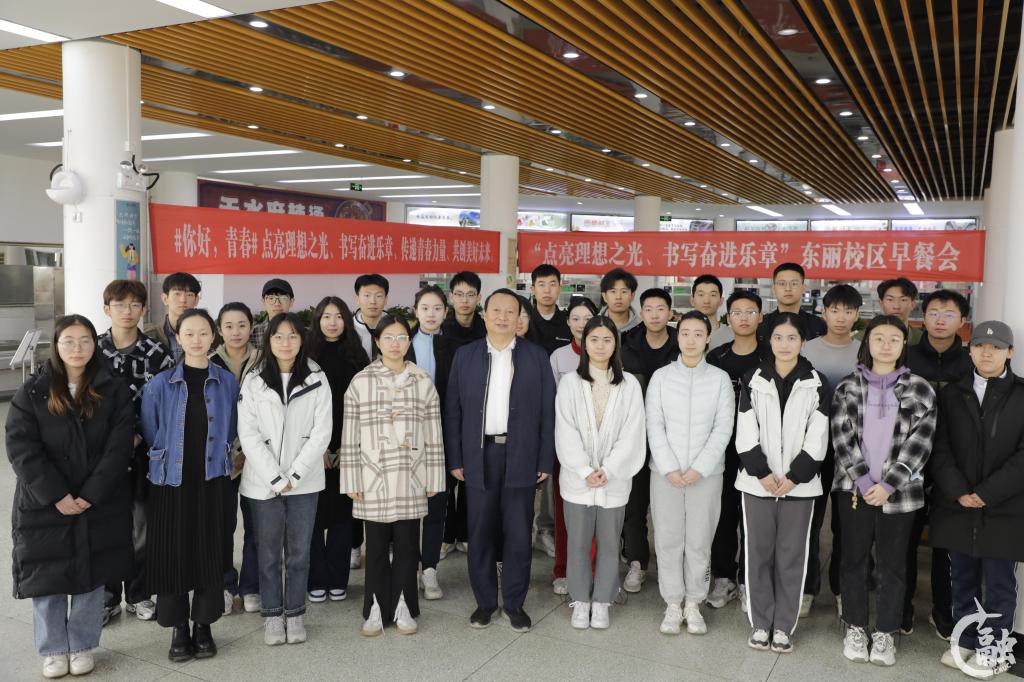 本网讯 4月10日,校党委副书记、校长丁水汀,校党委常委、统战部部长葛维建与各学院32名学生代表在东丽校区厦航食堂相聚一堂、共进早餐,围绕“点亮理想之光·书写奋进乐章”主题,畅谈学习生活的所感所悟。党委学工部、校团委、教务处、研究生院等部门相关负责人参加。