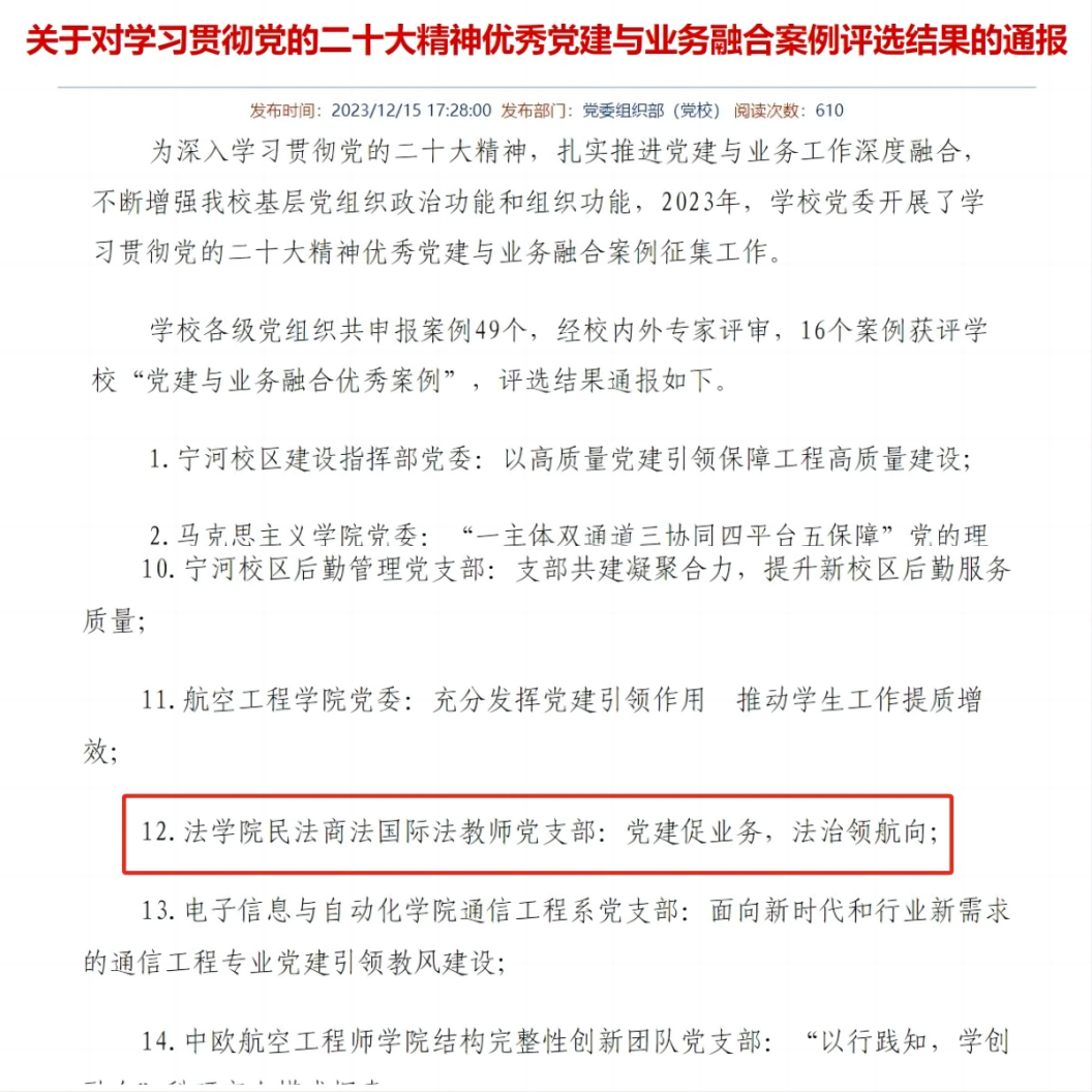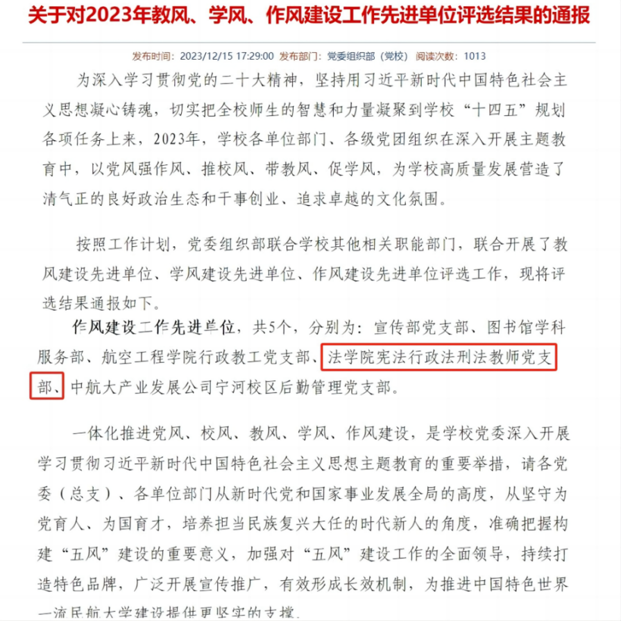 民商国际法教师党支部获评学校优秀党建与业务融合案例,宪法行政法刑法教师党支部获评学校作风建设工作先进单位,涵养风清气正政治生态和高尚师德师风,保证教学、科研等各项工作平稳有序推进。