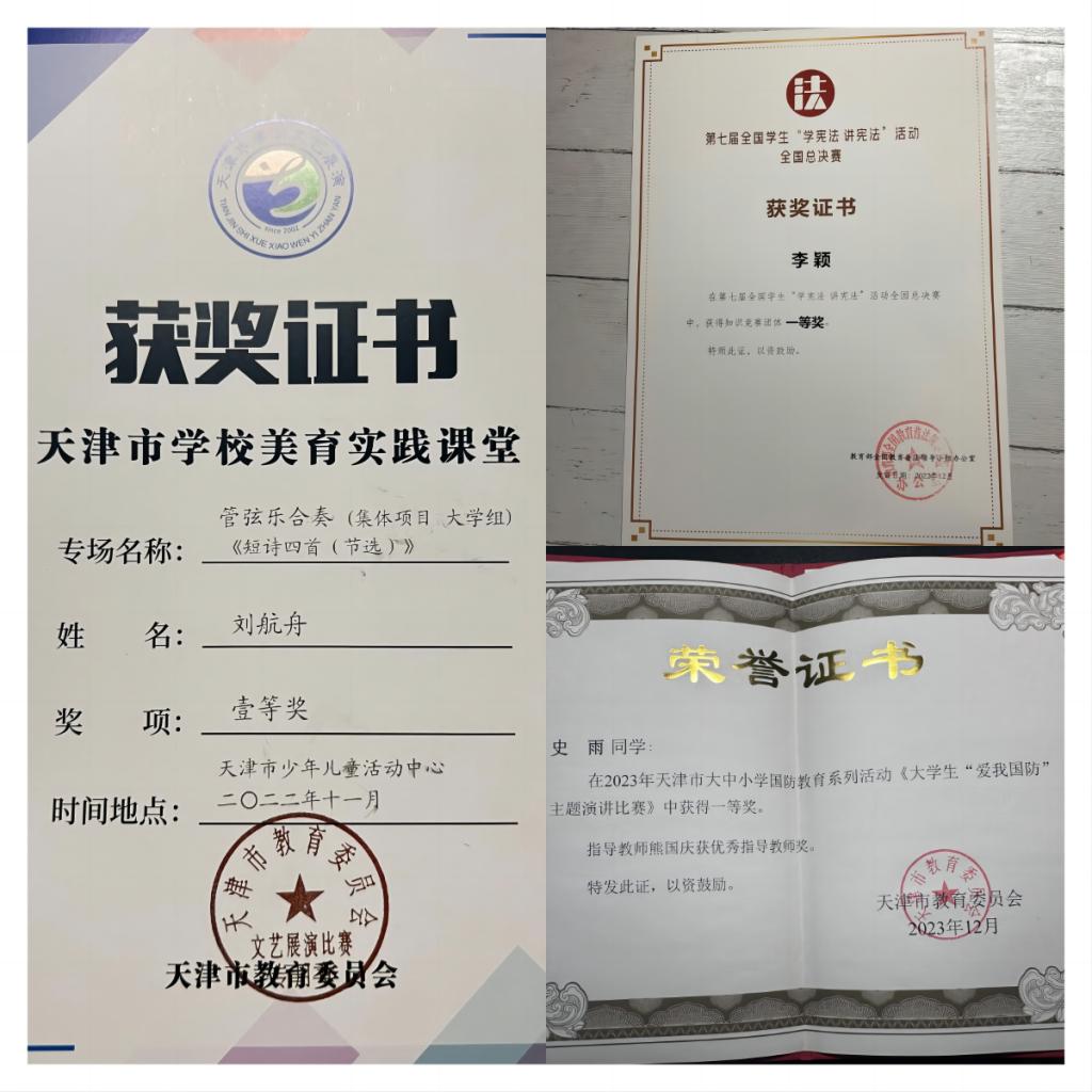 专业学生实践活动丰富多彩。近年来,学院每年集中组织开展学生专业实习,编制法律卷宗千余部。学院培养的学生在辩论、文艺、体育、学术研究、创新创业等领域获得国家级奖项10余项,天津市级奖项40余项,校级奖项100多项,涌现出第十三届国际模拟法庭竞赛中国区选拔赛一等奖、第七届全国学生“学宪法 讲宪法”比赛全国总决赛一等奖、第十八届挑战杯课外作品大赛国家级三等奖、全国大学生英语竞赛三等奖、第十九届曼弗雷德拉克斯国际空间法模拟法庭国内选拔赛三等奖、天津市第六届高校“敬东杯”模拟法庭大赛冠军、第九届中国国际“互联网+”大学生创新创业大赛天津赛区银奖、华北五省大学生人文知识竞赛天津市二等奖、天津市文艺展演一等奖、天津市大中小学国防教育系列活动一等奖等一批优秀个人和团队。近三年,考入公检法系统公务员、事业单位,参加西部计划、研究生支教团、“三支一扶”等国家或地方基层项目达到45人,占总就业人数的21.43%,用实际行动响应“到西部去,到基层去,到祖国和人民最需要的地方去”的号召。