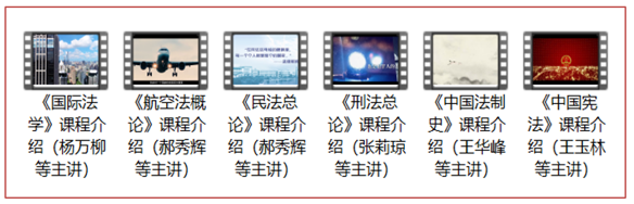 打造一流课程,教学水平显著提升。法学专业建有天津市级线上一流建设课程5门(《航空法概论》《民法总论》《中国法制史》《中国宪法》《刑法总论》),国家级一流课程2门(《走进民航》《机场运营与管理(英语)》)。在智慧树网、学堂在线、国家高等教育智慧教育平台上线运行专业课程6门,长期免费开放共享,成为校内外学生重要跨校共享学分课。建有校级精品课、校级双语示范建设课和课程思政示范建设课程17门。课程的规划和建设已构成法学本科专业的核心竞争力。