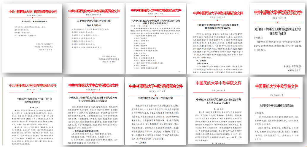 坚持制度筑基,持续健全党建工作体系。完善党政联席会和院党委会议事规则,严格执行重大问题决策程序,进一步提升管理水平。坚持制度先行、依规治院,制定、修订《中欧航空工程师学院关于持续加强和改进师德师风建设的实施意见》《中欧航空工程师学院意识形态工作实施方案》《中欧航空工程师学院文化宣传工作实施方案》等20余项制度文件,以完善的制度体系确保各项工作落地落细落实。