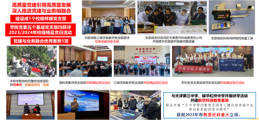 自学校第二次党代会以来,中欧航空工程师学院在校党委的坚强领导下,全面落实立德树人根本任务,贯彻“融合中法教育理念,创新工程教育模式,持续提高人才核心竞争力和学院国际影响力”的办学理念,坚持“突出特色、强化优势、立足航空、面向世界”的办学定位,聚焦党的建设、人才培养、人才建设三个高地建设,全力推进教育、科技、人才“三位一体”协同融合发展。
