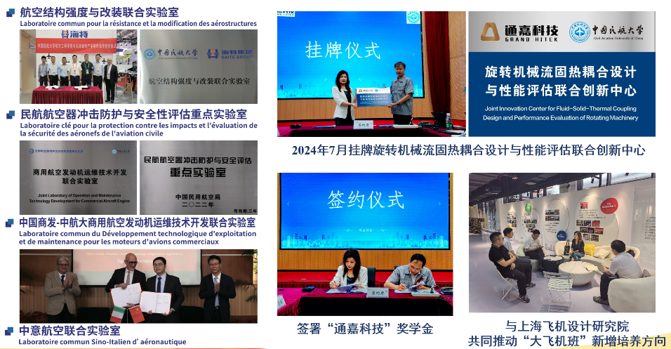 加强平台搭建,优化人才发展环境。搭建人才平台是集聚人才、培养人才最有效的方式。学院加强产教融合,聚焦民航运维等领域技术问题,与企业建立联合实验室平台,推动创新资源转化为科技成果。先后成立“航空结构强度与改装联合实验室”“民航航空器冲击防护与安全性评估重点实验室”“商用发动机运维技术开发联合实验室”“中意航空联合实验室”和“旋转机械流固热耦合设计与性能评估联合创新中心”。