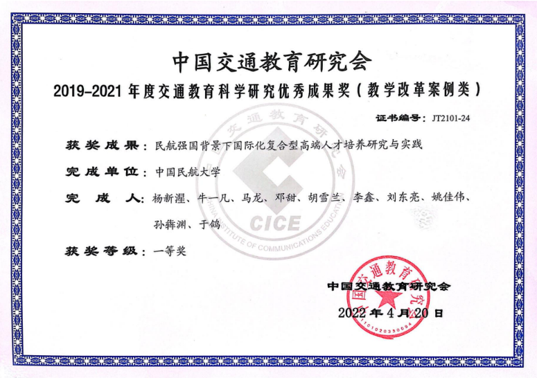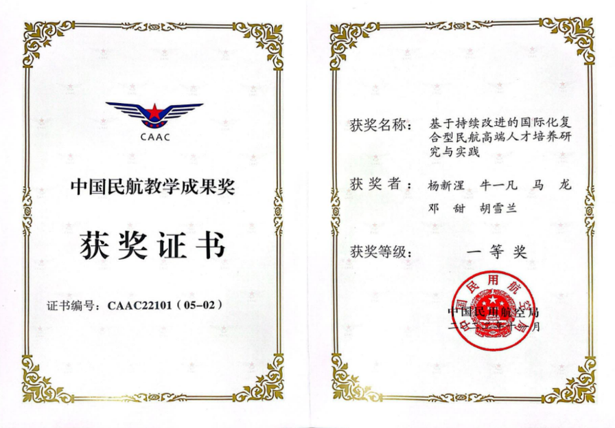 中国民航教学成果奖一等奖