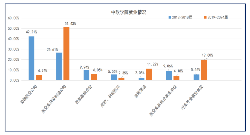 优化校企协同机制,促进学生更高质量就业。就业工作是落实立德树人根本任务的重要一环,是检验人才培养质量的重要指标。学院不断适应“两业融合”发展趋势,以民航科技创新和工程技术人才培养为牵引,加快构建高质量育人体系,强化与企业全方位互动,持续放大校企合作模式协同效应。强化大学生生涯发展与就业指导课程建设,提供个性化、精准化、便捷化就业指导服务等暖心举措,全力提升毕业生就业能力。近五年毕业生就业率均实现100%,就业向民机设计、制造领域加快流动,学生就业满意度、行业美誉度持续提升。学院坚持以服务国家大飞机事业发展战略需求为价值导向,近五年103名毕业生投身中国商飞、商发,占毕业生人数近30%。创新育人模式,与上海飞机设计研究院成立大飞机班,培养模式入选教育部第一期就业供需对接项目、民航行指委“十佳产教融合典型案例”。