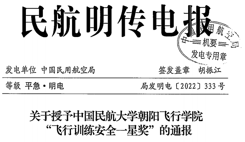 航空安全能力不断提高。深入贯彻落实民航局、学校航空安全工作要求,凝练出“以质量保安全、以作风促安全、以科技护安全、以制度督安全”安全管理工作理念,逐步完善“人防+技防+管理防”的航空安全工作格局,建设了航空安全管理系统,打造人人关注安全、人人参与安全、人人保障安全的良好氛围。通过持续强化安全意识、完善安全管理体系、提升安全保障能力,航空训练安全水平取得了显著的提升,累计飞行1,094,854架次,从未发生通航事故,2022年朝阳飞行学院、新疆天翔航空学院有限公司获民航局“飞行训练安全一星奖”。