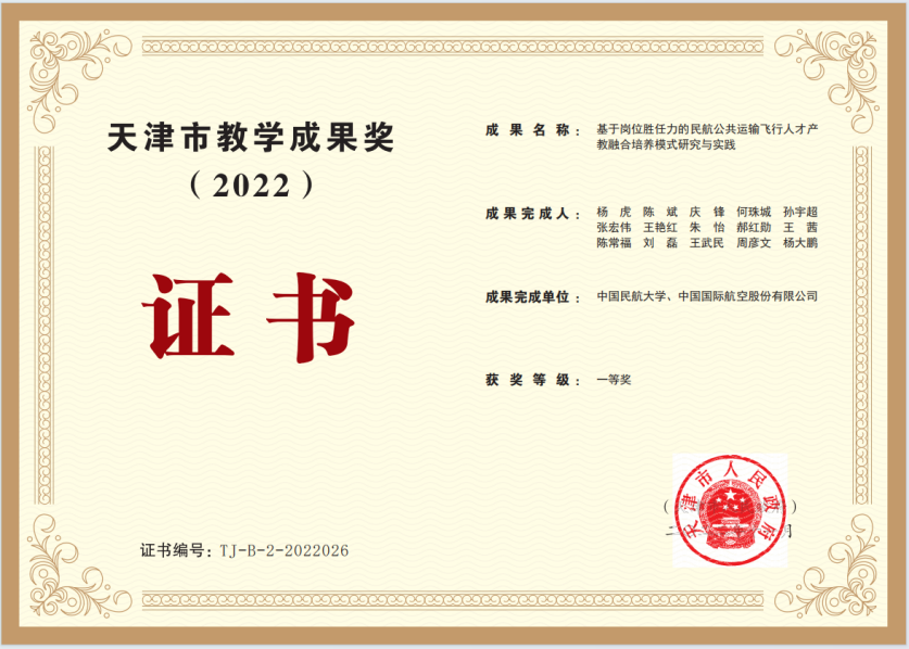 加强产赛教融合,专业实践实习助力人才培养质量提升。推进产教结合,努力打造融人才培养、科技创新、企业服务、学生创新创业为一体的人才培养综合体系,飞行分校“民航飞行产业学院”获批为天津市现代产业学院建设单位,飞行技术专业获批首批天津市普通高校产教融合型品牌专业建设点;加强教赛相长,以赛促教,分校师生获天津市大中小学“故事思政”微课大赛特等奖1人、民航局首届思政课青年教师教学竞赛三等奖1人,天津市青年教师教学竞赛三等奖2人,连续获全国高校模拟飞行锦标赛团体、个人奖项20余项;问需行业,精进技术,飞行分校内蒙古飞行学院结合国航专属基地建设需求,在国内首家开展PBN程序训练,填补了PBN程序在国内CCAR-141飞行院校培训领域的空白;连续开展三届飞行英语技能大赛,持续提升学生英语应用能力;持续开展飞行教员技能大赛,机务维修岗位技能大赛,不断提升飞行训练队伍能力,积极参加“安康杯”竞赛,1个集体荣获全国表彰(继续保持荣誉),3个集体和1名个人荣获民航系统表彰(其中2个集体为继续保持荣誉)。