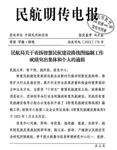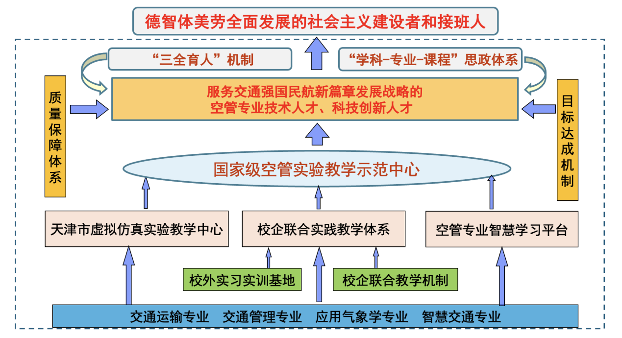 交通运输专业获批国家级一流本科专业建设点,《飞机性能工程》入选首批国家级一流本科课程并获批天津市高校课程思政示范课程,《空域规划》《航空气象学》《机场管制》等课程先后入选天津市一流课程,《雷达管制》入选天津市创新创业教育特色示范课程;建设完成全国首个空管智慧学习平台——“郁金香智慧学习平台”,获天津市教学成果奖一等奖,成功入选教育新基建典型和民航局优秀案例,先后亮相民航科教成果展及世界智能产业博览会;2021年,受邀参与编写《综合运输交通导论》和《综合交通运输学》2部交通运输部统编教材,参编教育部战略性新兴领域“十四五”高等教育教材《交通运输工程学》;2023年,率先开设国内民航院校首批智慧交通专业并成功获批天津市新工科重点建设专业,为我国智慧民航建设培养跨学科复合型的科技创新型人才;2024年,获批气象专业学位硕士点、交通运输专业学位博士点、交通运输工程一级学科博士点,已形成航空器运行管理岗位全覆盖、行业特色“本-硕-博”贯通式人才培养格局。