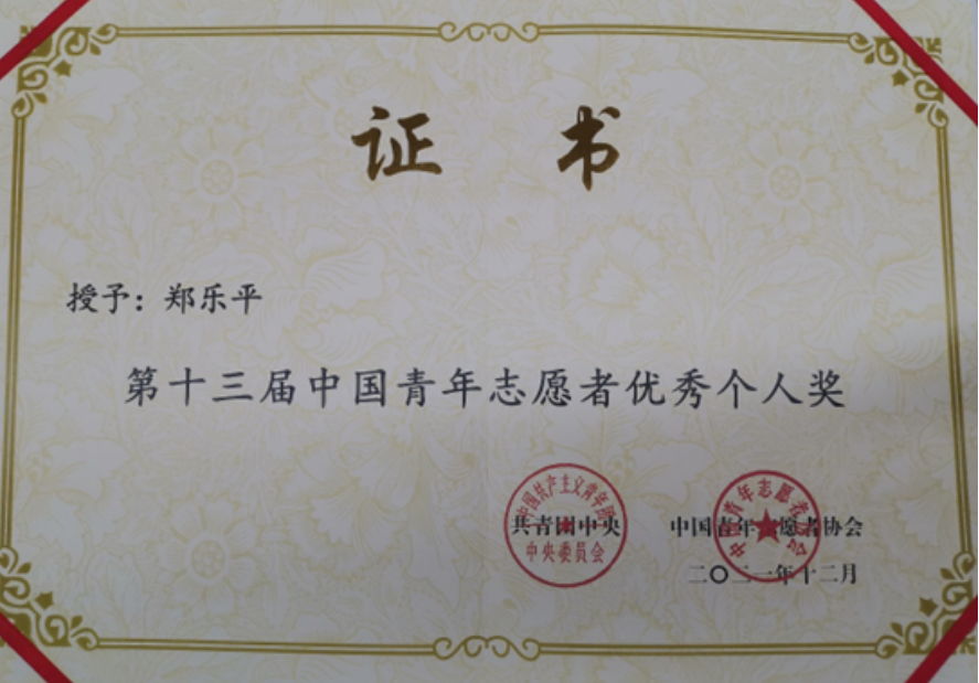 学生获第十三届“中国青年志愿者优秀个人奖”