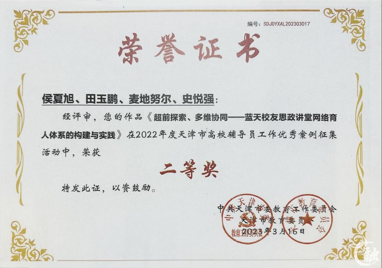 学院学生工作成果多次获得天津市各类荣誉