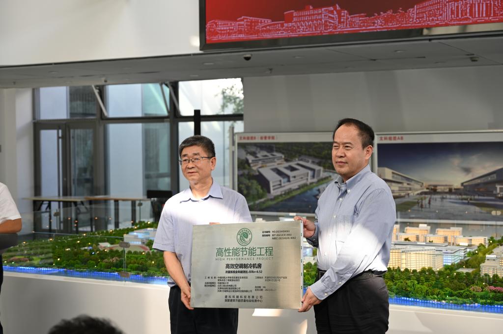 仪式上,中国建筑研究院国家空调设备质量检验检测中心主任路宾为中国民航大学颁发国家级《高性能节能工程》认证授牌并表示,中国民航大学宁河校区一期工程建设的能源站高效机房,冷源系统全年能效比EERa高达6.52,取得了超过国家高效机房标准30%的佳绩,在国家双碳目标的背景下,中国民航大学践行绿色节能理念,建设单位、设计单位为此付出了诸多努力,为高等院校能源工程建设树立了标杆,指明了方向。