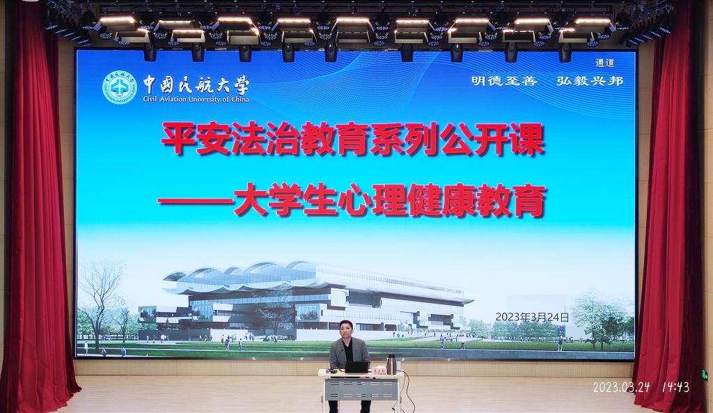 3月24日下午,中国民航大学宁河校区与宁河区心理健康体验中心、宁河区精神卫生中心在宁河校区图书馆报告厅联合开展大学生心理安全公开课活动,飞行分校、乘务学院共三百余名师生参加。