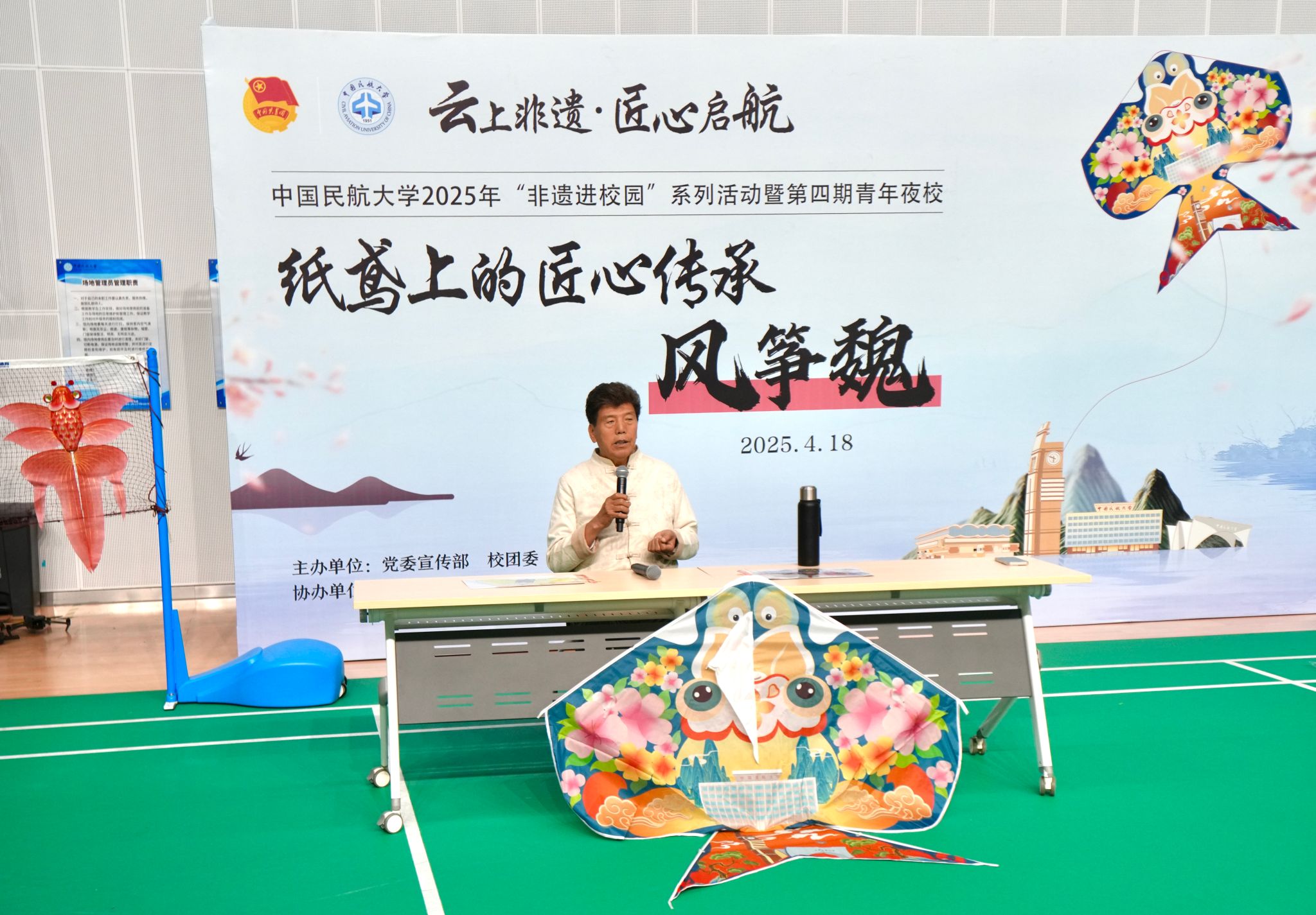 活动特邀“风筝魏”第四代传承人魏国秋先生主讲,通过现场演示风筝制作的关键步骤,展示了“以竹为骨、以绢为翼”的传统工艺,魏国秋向同学们讲述“风筝魏”的历史起源、艺术价值和制作工艺,进行风筝“扎、糊、绘、放”的现场教学,现场展示的风筝具有造型多变、彩绘逼真、飞行平稳、特技精湛、便于携带的独特风格。