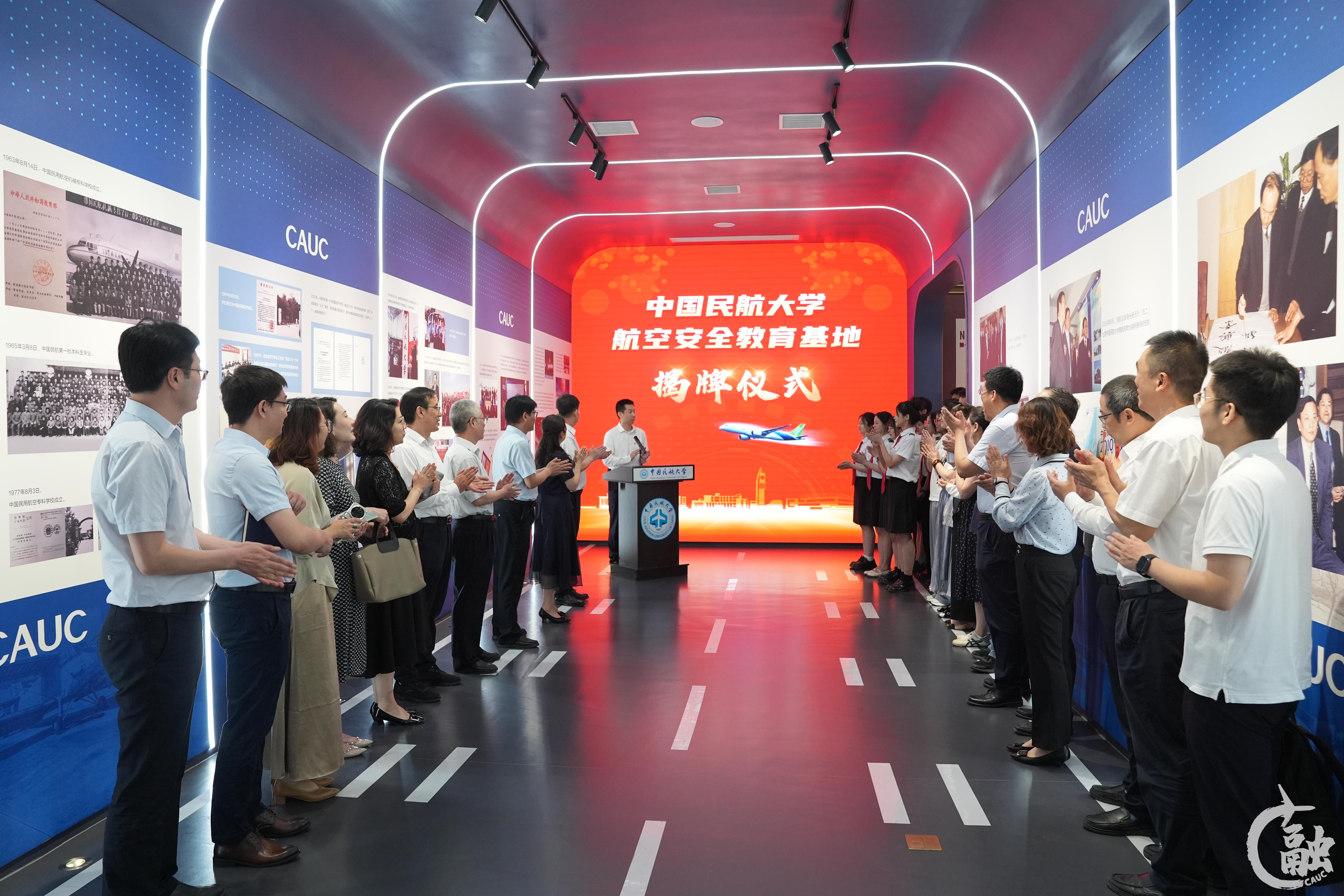 仪式上,校领导为航空安全教育基地揭牌。