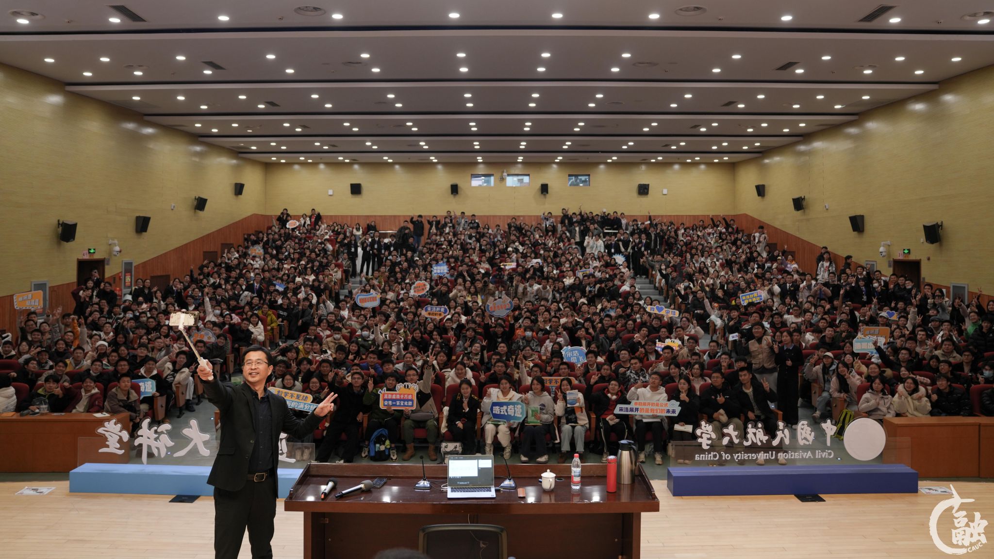 近日,为深入贯彻落实《中国共产党思想政治工作条例》要求,扎实推进立德树人根本任务,精准回应青年学生对优质教育资源和名家指导的迫切需求,中国民航大学精心打造的“名师谈大学”暨“蓝天大讲堂”思政育人品牌活动圆满举办。中国民航大学特邀全网粉丝超1200万的知名数学教师、山东财经大学宋浩走进校园,与800余名师生展开零距离交流,将线上的知识传播与精神感召转化为线下沉浸式育人实效。