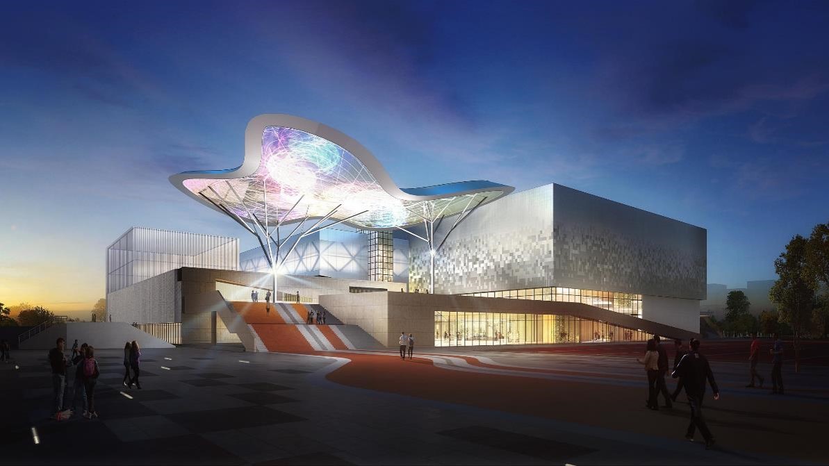 体育馆设计理念:航空之翼,毗邻城市,社区开放共享.