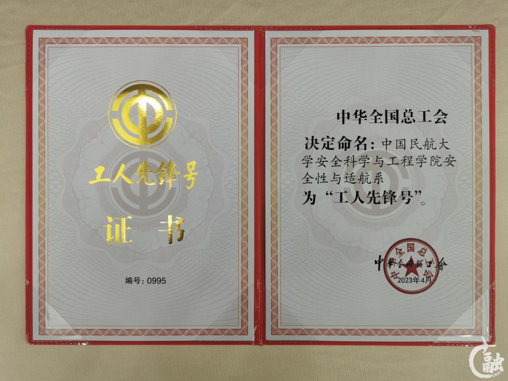 2023年“五一”劳动节前夕,经中国民航工会推荐,中华全国总工会授予民航系统27个先进集体和先进个人“全国五一劳动奖”和“全国工人先锋号”荣誉称号。中国民航大学安全科学与工程学院安全性与适航系获“全国工人先锋号”荣誉称号。