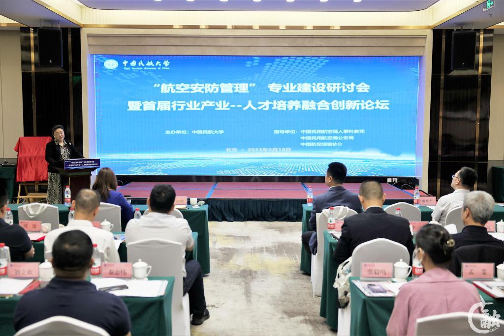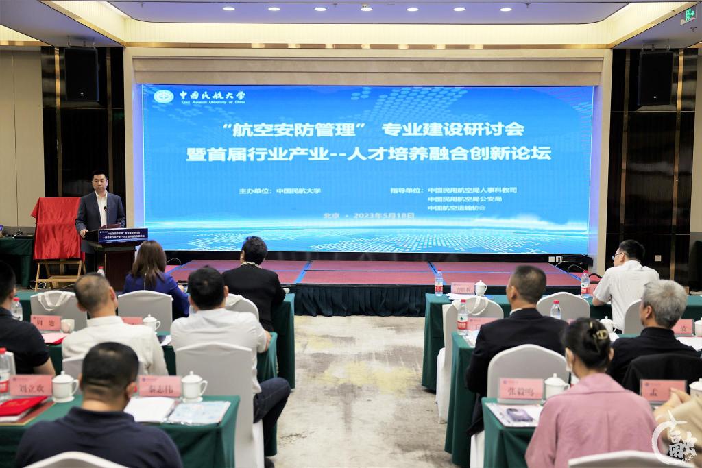 5月18日,中国民航大学“航空安防管理”专业建设研讨会暨首届行业产业--人才培养融合创新论坛在北京召开。来自民航局人教司、民航局公安局、中国航空运输协会、民航华北地区管理局、民航华东地区管理局、民航中南地区管理局、民航西南地区管理局、民航大兴机场监管局、中国国际航空、东方航空、南方航空、厦门航空、首都机场集团、中国民航飞行学院、中国民航管理干部学院、民航科学技术研究院、中国人民公安大学、北京理工大学、中国政法大学、北京工商大学以及中国民航大学等38家民航业内外企事业单位、高校相关负责人、专家、学者等50余人出席,共同围绕“加强‘航空安防管理’专业建设,提升民航安防人才培养质量”进行研讨。