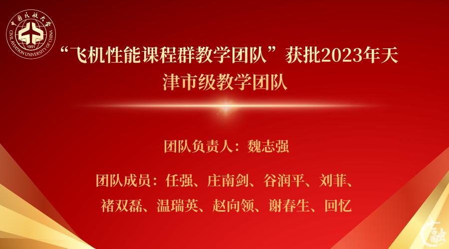 日前,天津市教委公布2023年天津市级教学团队评审结果,中国民航大学空中交通管理学院魏志强牵头的“飞机性能课程群教学团队”获批2023年天津市级教学团队。