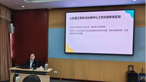 社保东丽分中心工伤保险待遇发放科王延一老师围绕工伤预防、工伤保险参保缴费、工伤认定经办流程、工伤待遇申领等多个角度进行全方位、多层次的政策宣传,让中航大教职工进一步扩大工伤保险政策法规的知晓度。